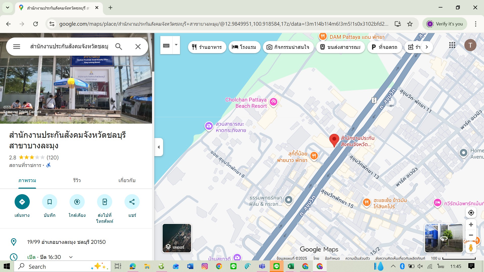 | เพิ่มเติม | สำนักงานประกันสังคมจังหวัดชลบุรี สาขาบางละมุง ที่พัทยาค่ะ Map : https://maps.app.goo.gl/7WQ856FP7xKrr9MR8 |